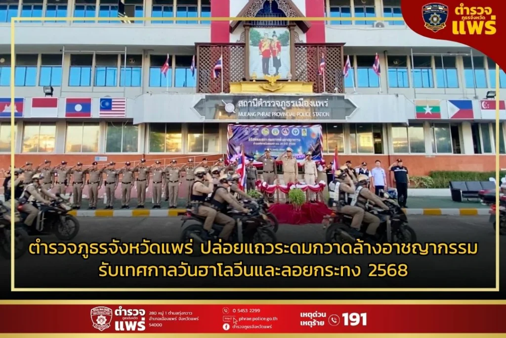 🙏 เข้าร่วมพิธี ปล่อยแถวระดมกวาดล้างอาชญากรรมก่อนวันฮาโลวีนและเทศกาลวันลอยกระทง ประจำปี 2568