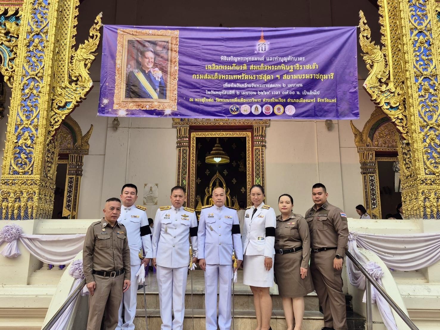 ข้าราชการตำรวจภูธรจังหวัดแพร่ร่วมพิธีเจริญพระพุทธมนต์และทำบุญตักบาตรเพื่อเฉลิมพระเกียรติสมเด็จพระกนิษฐาธิราชเจ้า กรมสมเด็จพระเทพรัตนราชสุดาฯ สยามบรมราชกุมารี เนื่องในโอกาสวันคล้ายวันพระราชสมภพ ๒ เมษายน ๒๕๖๙ เพื่อแสดงความจงรักภักดีและน้อมสำนึกในพระมหากรุณาธิคุณที่ทรงมีต่อพสกนิกรชาวไทยอย่างหาที่สุดมิได้