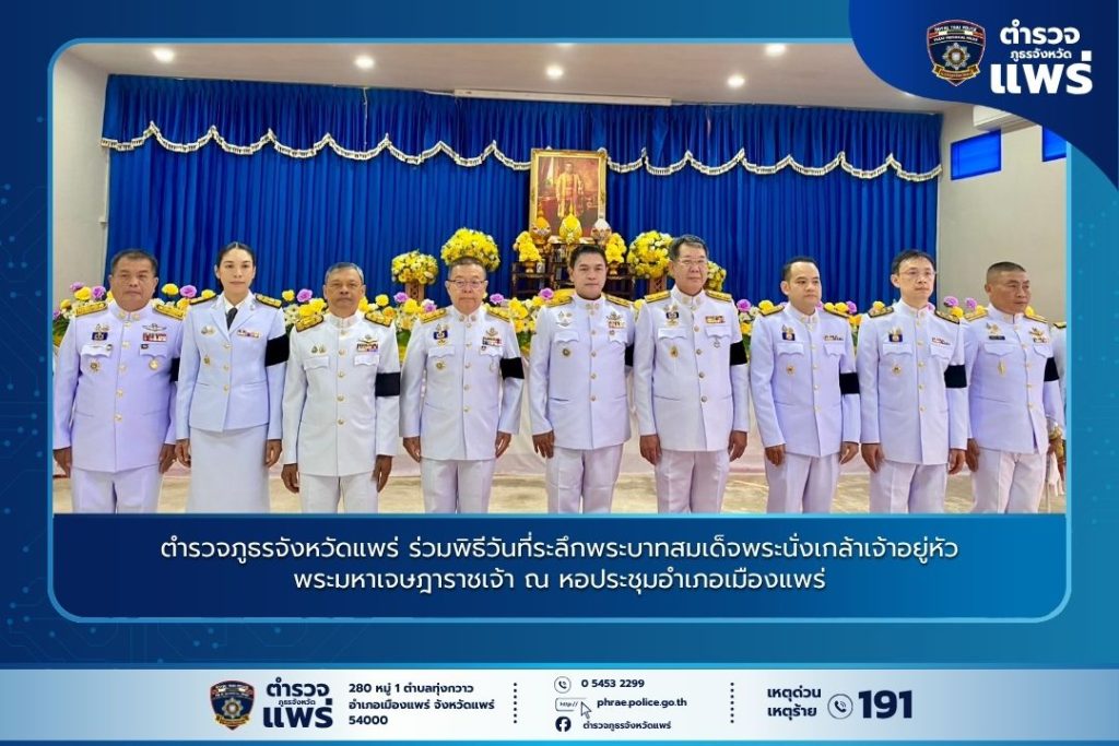 ตำรวจภูธรจังหวัดแพร่ ร่วมพิธีวันที่ระลึกพระบาทสมเด็จพระนั่งเกล้าเจ้าอยู่หัว พระมหาเจษฎาราชเจ้า ณ หอประชุมอำเภอเมืองแพร่