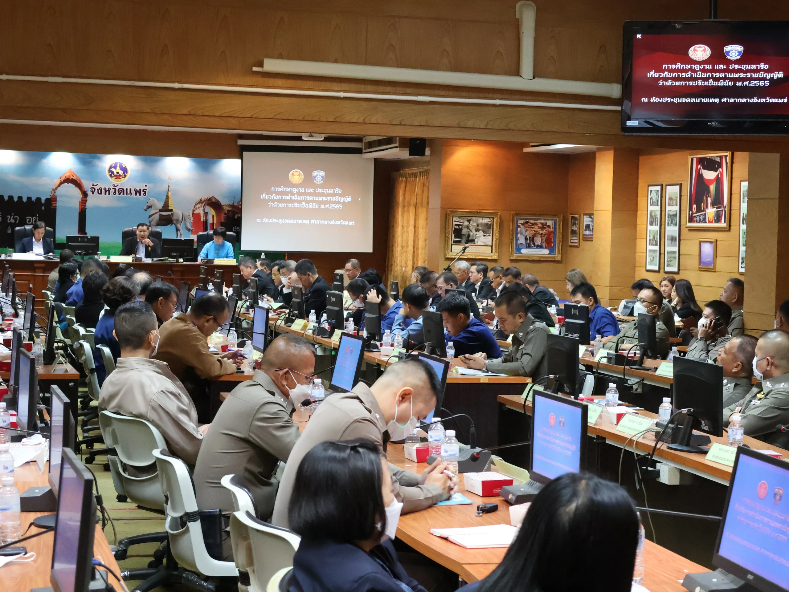วันนี้ 1 ธ.ค.66 เวลา 08.30 น. พ.ต.อ.สิทธิชัย ไกรแสง รอง ผบก.ภ.จว.แพร่,ผกก.(สอบสวน) กลุ่มงานสอบสวน ภ.จว.แพร่,หน.สภ.ในสังกัดและหน.งานสอบสวน สภ.ในสังกัด ร่วมประชุมหารือ เพื่อรับฟังข้อมูลและข้อคิดเห็นในประเด็นการดำเนินการตาม พ.ร.บ.ว่าด้วยการปรับเป็นพินัย พ.ศ.2565 ในการนี้มีคณะกรรมาธิการกฎหมาย การยุติธรรมและการตำรวจ วุฒิสภา เข้าร่วมประชุมด้วย โดยมี พล.ต.อ.ชัชวาลย์ สุขสมจิตร์ ประธานคณะกรรมาธิการ เป็นประธานการประชุม ณ ห้องประชุม จดหมายเหตุ ศาลากลางจังหวัดแพร่ อ.เมือง จ.แพร่