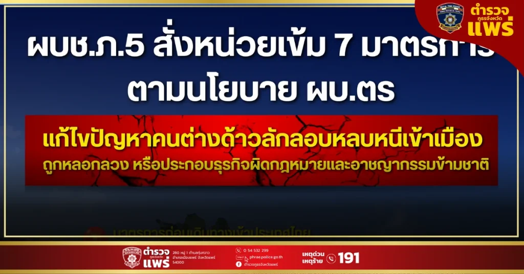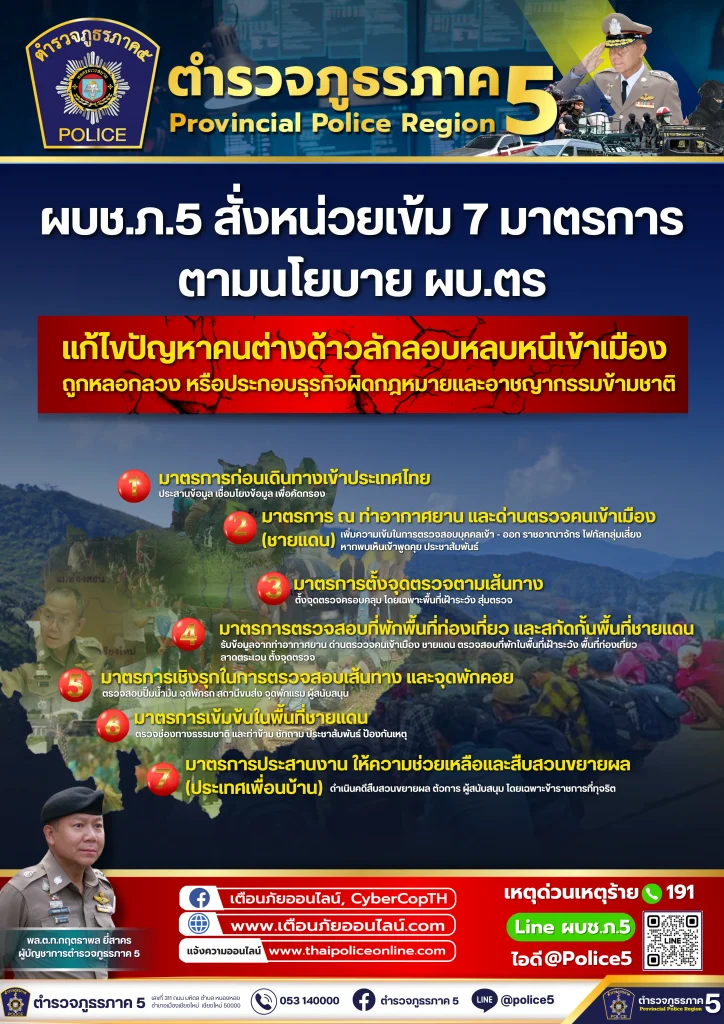 ผบช.ภ.5 สั่งหน่วยเข้ม 7 มาตรการตามนโยบาย ผบ.ตร. แก้ไขปัญหาคนต่างด้าว