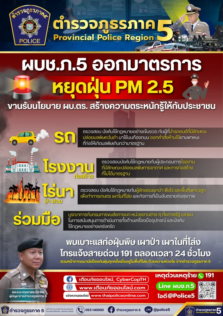 ผบช.ภ.5 ออกมาตรการหยุดฝุ่น PM 2.5 ขานรับนโยบาย ผบ.ตร.