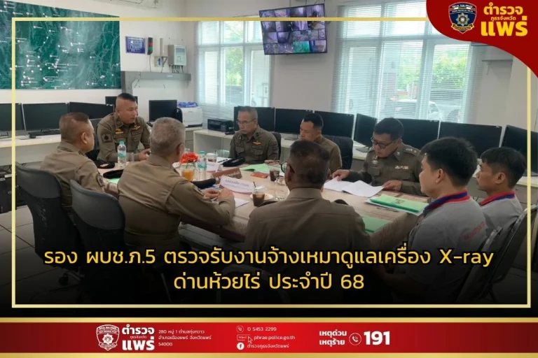 พล.ต.ต.กิตติ สกุณี ผบก.อก.ภ.5 พร้อมคณะเดินทางมาเพื่อตรวจรับงานจ้างเหมาดูแลรักษาเครื่องเอ็กซเรย์ตรวจค้นยาเสพติด ของ ด่านตรวจยาเสพติด ห้วยไร่ สภ.ห้วยไร่ จว.แพร่ ประจำเดือน มิถุนายน 2567