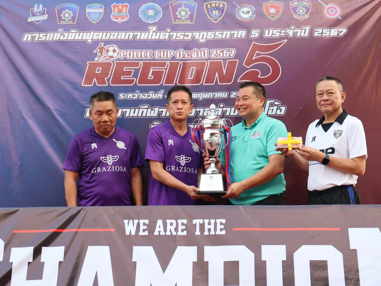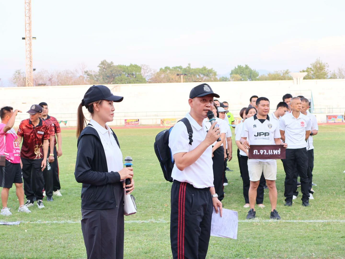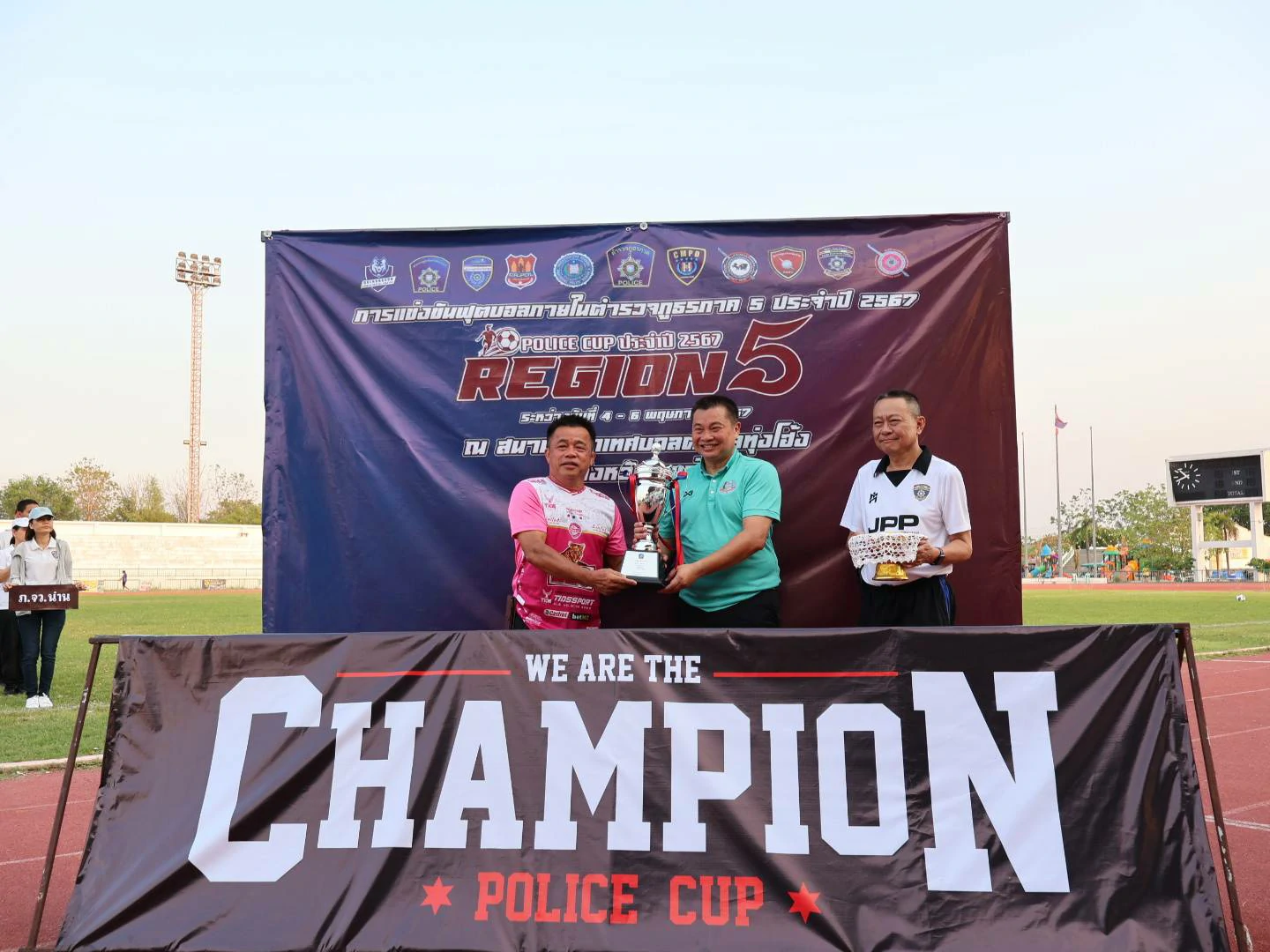 วันนี้ 6 พ.ค.67 เวลา 17.00 น. พล.ต.ต.ธนะรัชต์ ชุ่มสวัสดิ์ รอง ผบช.ประจำฯ ช่วยราชการ ภ. 5 เป็นประธานปิดการแข่งขันฟุตบอลภายในสังกัดตำรวจภูธรภาค 5 โดยมีพล.ต.ต.พิชญา บุญขจร ผบก.ภ.จว.แพร่,คณะรอง ผบก.ภ.จว.แพร่,ผกก.สส.ภ.จว.แพร่,ผกก.ฝอ.ภ.จว.แพร่,ผกก.(สอบสวน)กลุ่มงานสอบสวน ภ.จว.แพร่,หน.สภ.ในสังกัด , ข้าราชการตำรวจ ในสังกัด ภ.จว.แพร่ และ นักกีฬาฟุตบอลจาก 8 จังหวัดในสังกัด ภ.5 , ศฝร.ภ.5 ให้การต้อนรับและเข้าร่วมพิธีปิดในครั้งนี้ ณ สนามกีฬาเทศบาลตำบลทุ่งโฮ้ง อ.เมือง จว.แพร่ ซึ่งการแข่งขันฟุตบอลภายในประจำปี 2567 จัดขึ้นระหว่างวันที่ 4-6 พ.ค.67