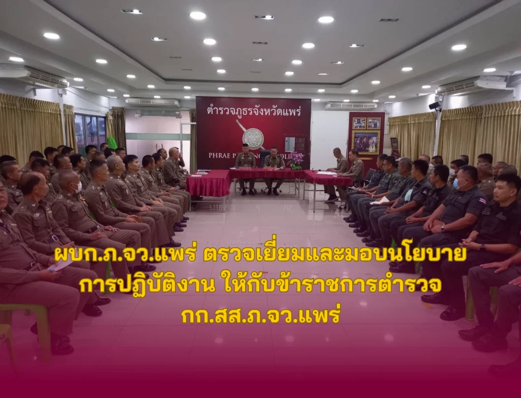 ข่าวภารกิจผู้บังคับบัญชา 8 กุมภาพันธ์ 2567 ตำรวจภูธรจังหวัดแพร่ 528 วันนี้ 8 ก.พ.67 เวลา 10.00 น. พล.ต.ต.พิชญา บุญขจร ผบก.ภ.จว.แพร่ ,พ.ต.อ.สายัณห์ จันทร์แจ่มกระจ่าง รอง ผบก.ภ.จว.แพร่ ตรวจเยี่ยมและมอบนโยบายการปฏิบัติงาน ให้กับข้าราชการตำรวจ กก.สส.ภ.จว.แพร่ โดยมี พ.ต.อ.มนัส เกิดสุขโข ผกก.สส.ภ.จว.แพร่ พร้อมข้าราชการตำรวจ กก.สส.ภ.จว.แพร่ ให้การต้อนรับและรับการตรวจเยี่ยม ร่วมประชุม ณ ห้องประชุม กก.สส.ภ.จว.แพร่