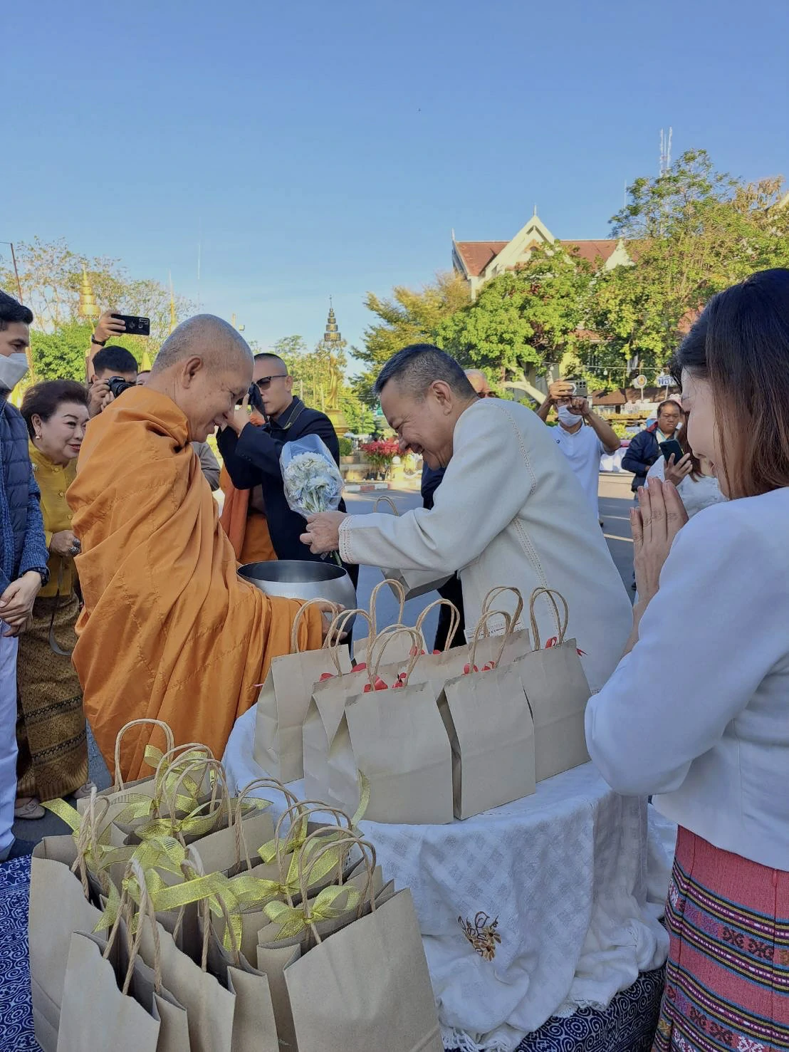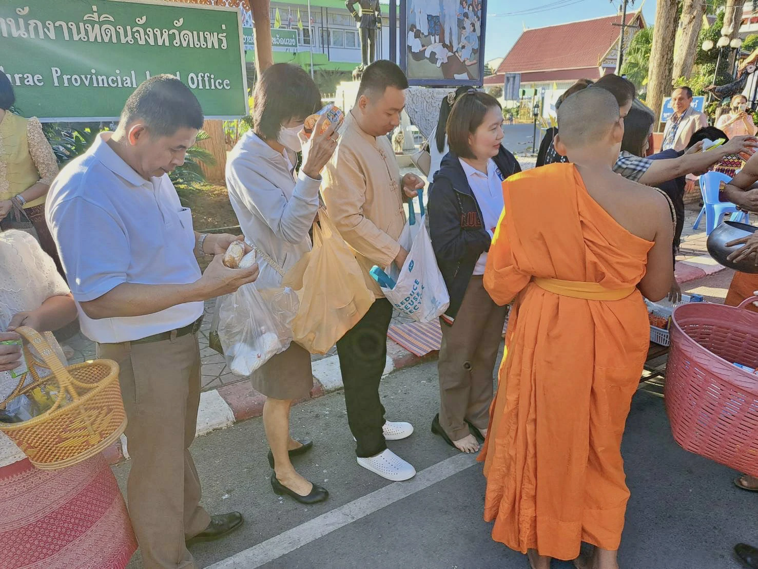 วันนี้ 1 ม.ค.67 เวลา 07.30 น. พล.ต.ต.พิชญา บุญขจร ผบก.ภ.จว.แพร่,คุณบุญสิตา บุญขจร ประธานแม่บ้านตำรวจภูธรจังหวัดแพร่ ,พ.ต.อ.จิตรภณ สมหมาย ผกก.ฝอ.ภ.จว.แพร่,พ.ต.อ.นรินทร์ วรรณมณี ผกก.สภ.เมืองแพร่พร้อมด้วยข้าราชการตำรวจ ฝอ.ภ.จว.แพร่ ชุดที่4 ,ข้าราชการตำรวจสภ.เมืองแพร่ ร่วมกิจกรรมประเพณีทำบุญตักบาตร เนื่องในโอกาสวันขึ้นปีใหม่ ประจำปี 2567 โดยมีนายชุติเดช มีจันทร์ ผวจ.แพร่ เป็นประธานในพิธี ณ บริเวณสี่แยกน้ำพุ สนามหลวงจังหวัดแพร่(สวนสุขภาพเฉลิมพระเกียรติ ร.9) อ.เมือง จว.แพร่