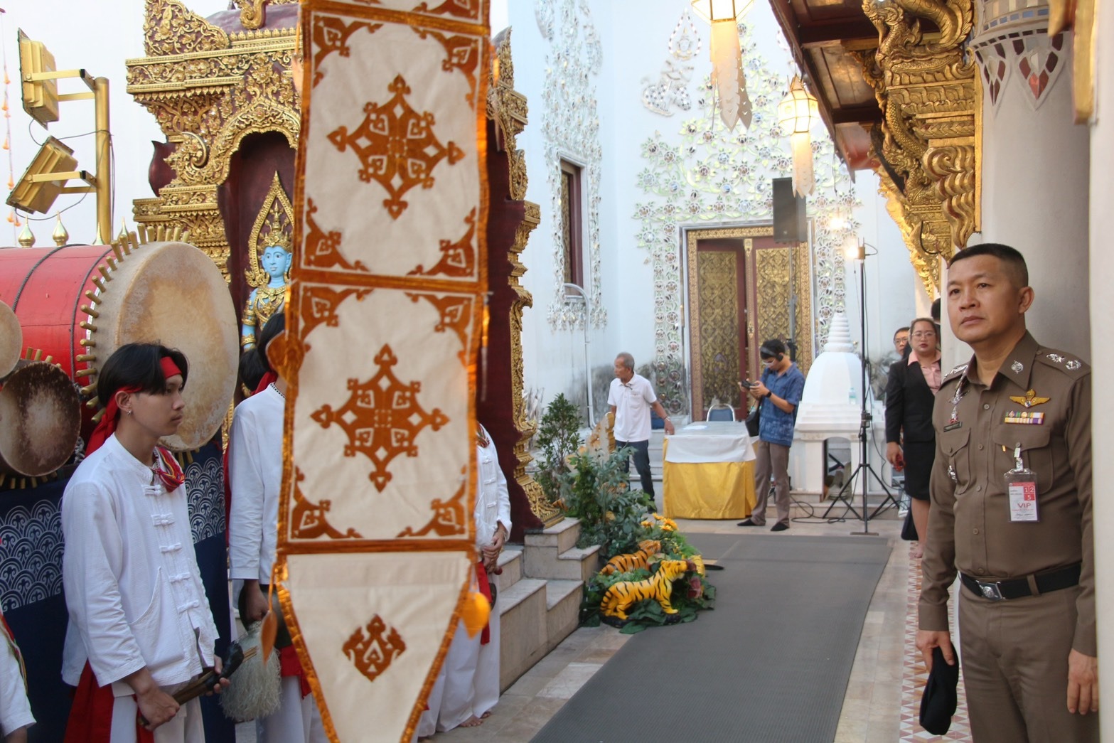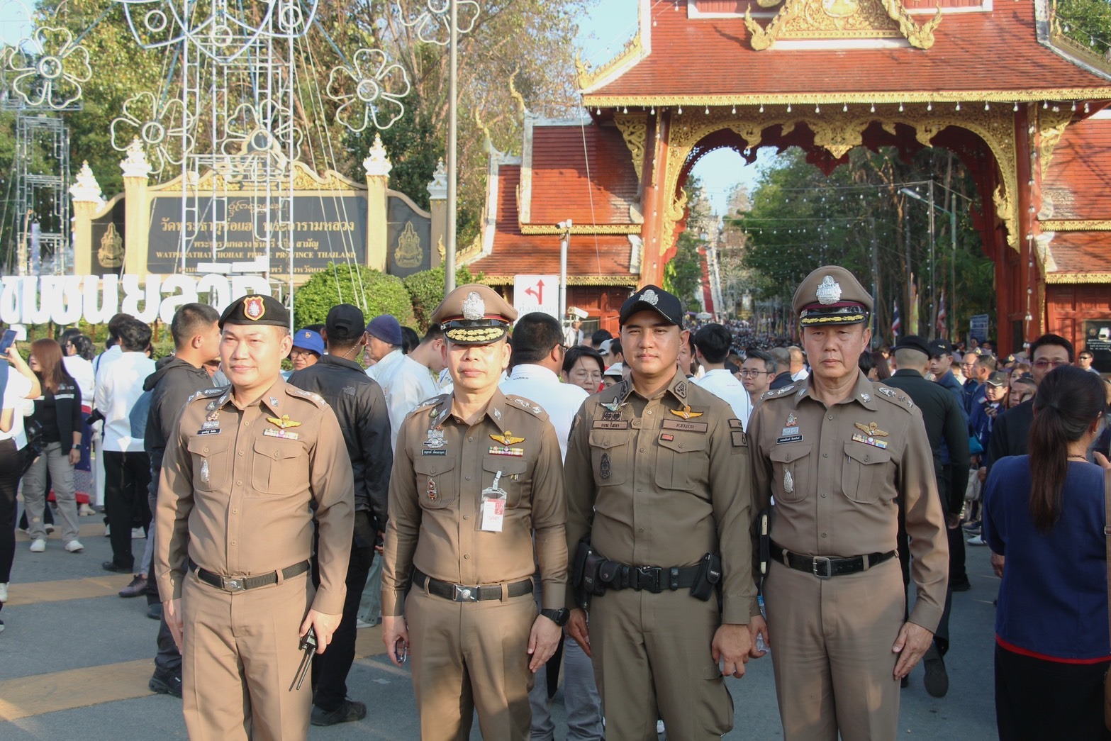 พล.ต.ท.กฤตธาพล ยี่สาคร ผู้บัญชาการตำรวจภูธรภาค 5 พร้อมด้วย พล.ต.ต.อนุสรณ์ พัฒนถาบุตร รองผู้บัญชาการตำรวจภูธรภาค 5 และ พล.ต.ต.พงษ์เดช คำใจสู้ ผู้บังคับการตำรวจภูธรจังหวัดแพร่ นำกำลังข้าราชการตำรวจในสังกัดปฏิบัติหน้าที่รักษาความปลอดภัยและอำนวยความสะดวกในโอกาสที่ นายอนุทิน ชาญวีรกูล นายกรัฐมนตรี เดินทางมาเป็นประธานในพิธีสักการะและห่มผ้าพระธาตุช่อแฮ ภายในงานประเพณีไหว้พระธาตุช่อแฮ เมืองแพร่แห่ตุงหลวง ประจำปี 2569 พร้อมด้วย นางสาวธนนนท์ นิรามิษ ภริยานายกรัฐมนตรี และคณะรัฐมนตรี เพื่อให้การดำเนินงานตามระเบียบวาระเป็นไปด้วยความเรียบร้อยและสมเกียรติ