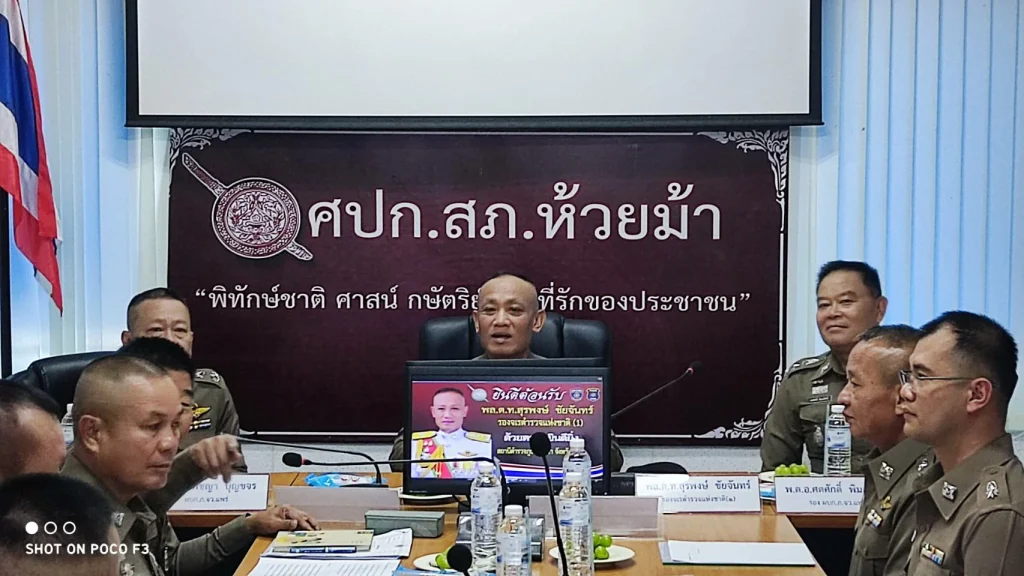 วันนี้ 10 ม.ค.67 เวลา 15.00 น. พล.ต.ท.สุรพงษ์ ชัยจันทร์ รอง จตช.(1) พร้อมคณะฯ ได้เดินทางมาตรวจเยี่ยม สภ.ห้วยม้า ในสังกัด ภ.จว.แพร่ เพื่อกำชับการเตรียมพร้อมรับการตรวจราชการและการดำเนินงานด้าน จต.,การเสริมสร้างขวัญกำลังใจข้าราชการตำรวจ,รับทราบปัญหาข้อขัดข้องในการปฏิบัติงานและข้อเสนอแนะของหน่วย โดยมี พล.ต.ต.พิชญา บุญขจร ผบก.ภ.จว.แพร่,พ.ต.อ.ชัยเสถียร มณีจักร รอง ผบก.ภ.จว.แพร่,พ.ต.อ.ศตศักดิ์ พิมลทิพย์ รอง ผบก.ภ.จว.แพร่,พ.ต.อ.นรินทร์ วรรณมณี ผกก.สภ.เมืองแพร่,พ.ต.อ.เกษม สายาจักร์ ผกก.สภ.ห้วยม้า พร้อมข้าราชการตำรวจ สภ.ห้วยม้า ให้การต้อนรับและรอรับการตรวจเยี่ยม ณ สภ.ห้วยม้า