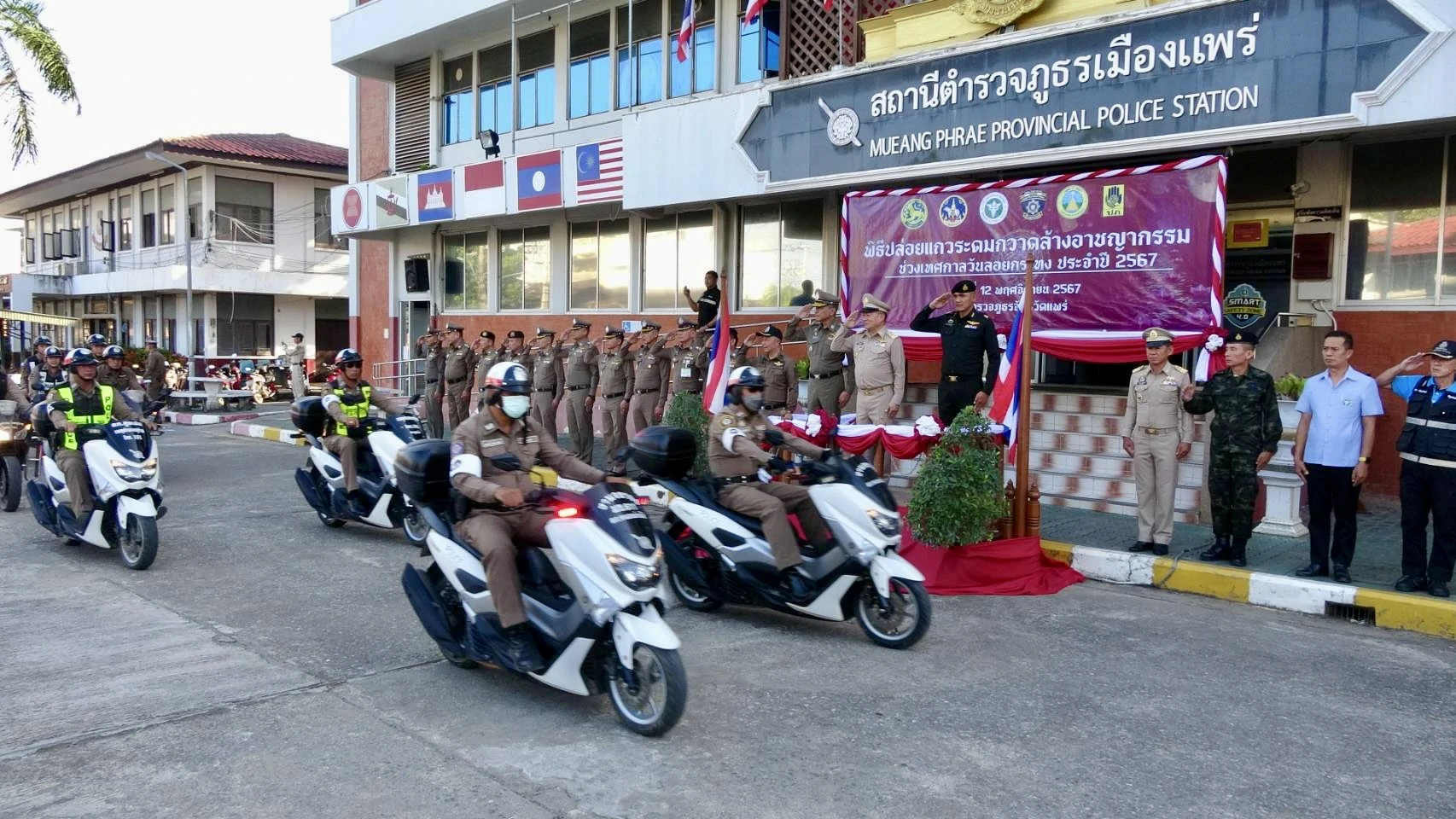 พิธีปล่อยแถวระดมกวาดล้างอาชญากรรมเทศกาลวันลอยกระทง ประจำปี 2567