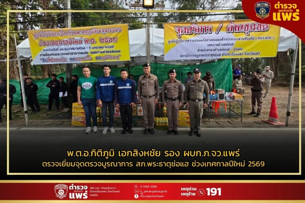 🎁 พร้อมกันนี้ ได้เป็นผู้แทนจาก ผบก.ภ.จว.แพร่ มอบสิ่งของเพื่อเป็นขวัญและกำลังใจแก่เจ้าหน้าที่ประจำจุดตรวจในการปฏิบัติหน้าที่