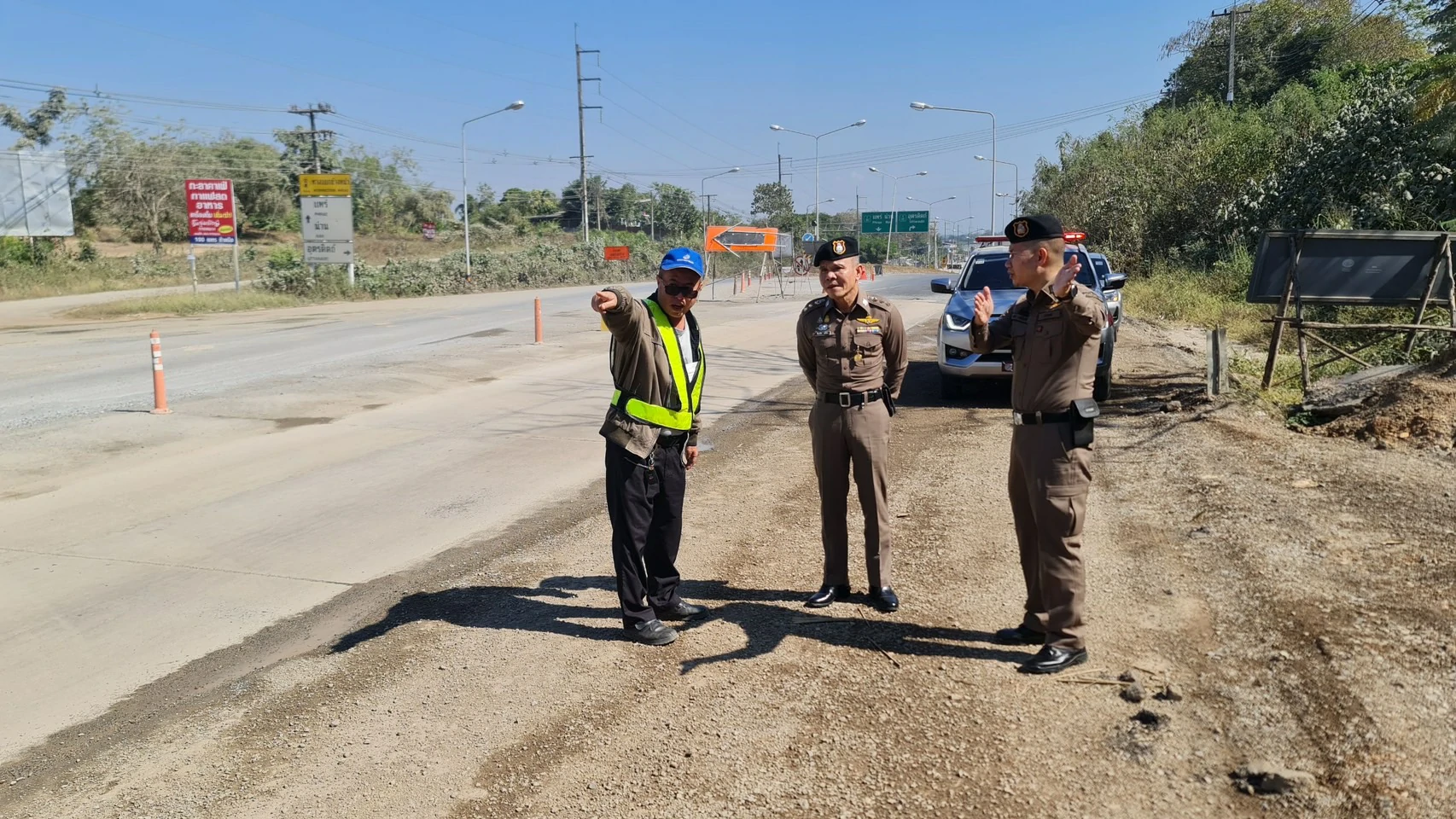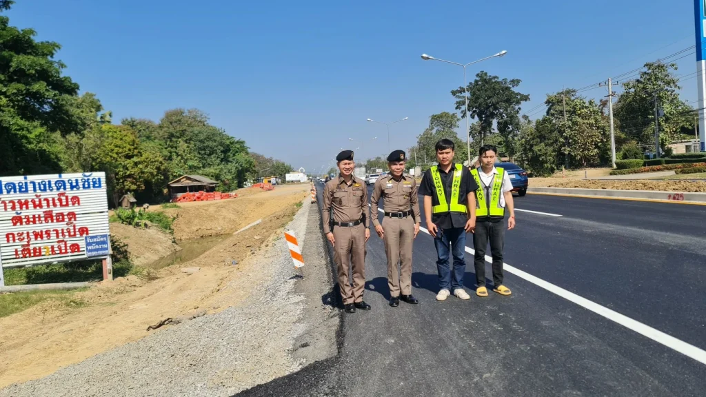 พ.ต.อ.เบน วงศ์เครือผกก.สภ.เด่นชัย ออก ว.4 ร่วมกับร้อยเวร 20,สายตรวจ 201,ชุดจราจรสำรวจเส้นทางและประสานผู้เกี่ยวข้องขอคืนพื้นผิวจราจรเพื่อป้องกันและลดอุบัติเหตุช่วงเทศกาลปีใหม่ 2567 บริเวณงานก่อสร้างถนนทางหลวงแผ่นดิน หมายเลข11 เส้นทางจาก จว.อุตรดิตถ์มุ่งหน้าเด่นชัย ซึ่งผู้รับเหมาได้ก่อสร้างเสร็จและคืนพื้นผิวทางทั้งหมดอย่างสมบูรณ์ ส่วนเส้นทางหลวงแผ่นดินหมายเลข 11 จากแยกเด่นชัยไป จว.ลำปาง ได้เจรจากับทางบริษัทก่อสร้าง ทราบว่า