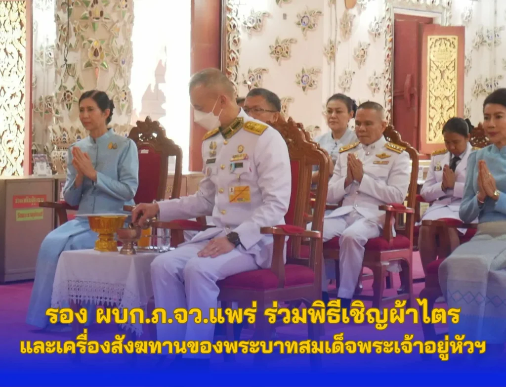 ข่าวภารกิจผู้บังคับบัญชา 26 มกราคม 2567 ตำรวจภูธรจังหวัดแพร่ 648 วันนี้ 26 ม.ค.2567 เวลา 11.30 น.พ.ต.อ.ชัยเสถียร มณีจักร รอง ผบก.ภ.จว.แพร่ร่วมพิธีเชิญผ้าไตรและเครื่องสังฆทานของพระบาทสมเด็จพระเจ้าอยู่หัว ทรงกรุณาโปรดเกล้าฯ พระราชทานไปถวายเจ้าอาวาสวัดพระธาตุช่อแฮ พระอารามหลวง ณ พระอุโบสถวัดพระธาตุช่อแฮ พระอารามหลวง ตำบลช่อแฮ อำเภอเมืองแพร่ จังหวัดแพร่