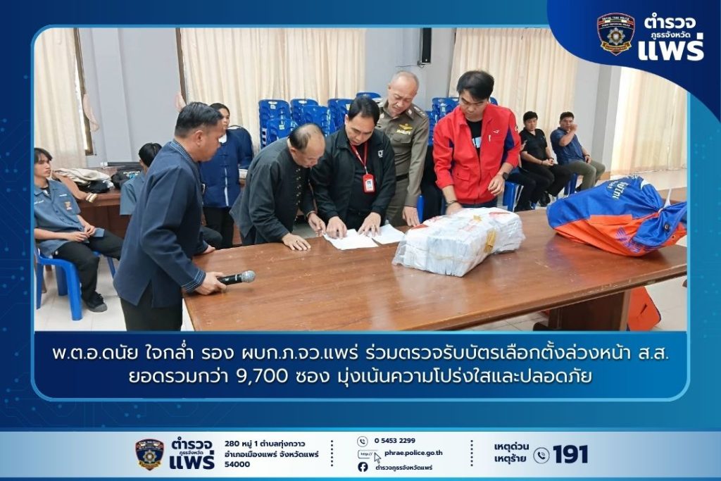 ตำรวจภูธรจังหวัดแพร่ – รองผู้บังคับการตำรวจภูธรจังหวัดแพร่ ในฐานะกรรมการการเลือกตั้งประจำเขต ร่วมกับผู้อำนวยการวิทยาลัยเทคนิคแพร่ ตรวจรับและตรวจนับบัตรเลือกตั้งล่วงหน้าทั้งในและนอกราชอาณาจักร เพื่อเตรียมความพร้อมเข้าสู่กระบวนการนับคะแนน ย้ำมาตรการรักษาความปลอดภัยหีบบัตรอย่างเข้มงวด