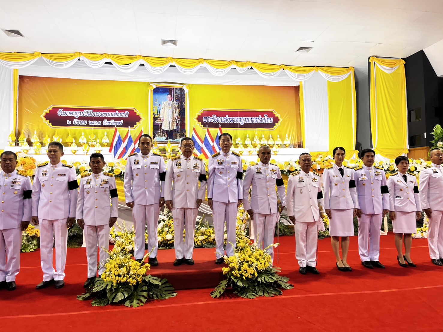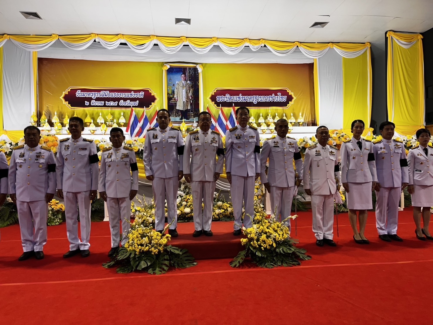 📅 เมื่อวันที่ 2 มีนาคม 2569 ⏰ เวลา 07.30 น. 📍 ณ ศูนย์ประชุมและแสดงศิลปวัฒนธรรมล้านนาตะวันออกและกลุ่มประเทศ GMS ตำบลทุ่งโฮ้ง อำเภอเมือง จังหวัดแพร่ ประธานในพิธีได้วางพุ่มดอกไม้สดถวายราชสักการะหน้าพระบรมฉายาลักษณ์ และกล่าวถวายราชสดุดีเทิดพระเกียรติ เพื่อแสดงความจงรักภักดีและสำนึกในพระมหากรุณาธิคุณที่พระองค์ทรงให้ความสำคัญต่อการพัฒนาฝีมือแรงงานและการช่างของไทย อันเป็นรากฐานสำคัญในการพัฒนาเศรษฐกิจและสังคมของประเทศ