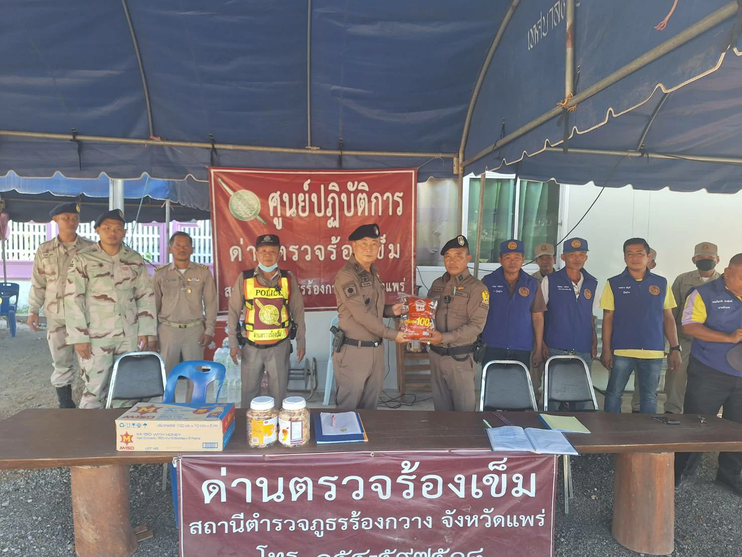 ได้มาตรวจเยี่ยมจุดตรวจปฏิบัติการป้องกันและลดอุบัติเหตุทางถนนช่วงเทศกาลปีใหม่ 2567 ของ สภ.ร้องกวาง พบเจ้าหน้าที่ตำรวจ เจ้าหน้าที่ฝ่ายปกครอง เจ้าหน้าที่สาธารณสุข อยู่ปฏิบัติหน้าที่รายงานเหตุการณ์ปกติ ได้มอบสิ่งของเพื่อใช้ในการปฏิบัติหน้าที่ และได้กำชับการปฏิบัติงานดังนี้