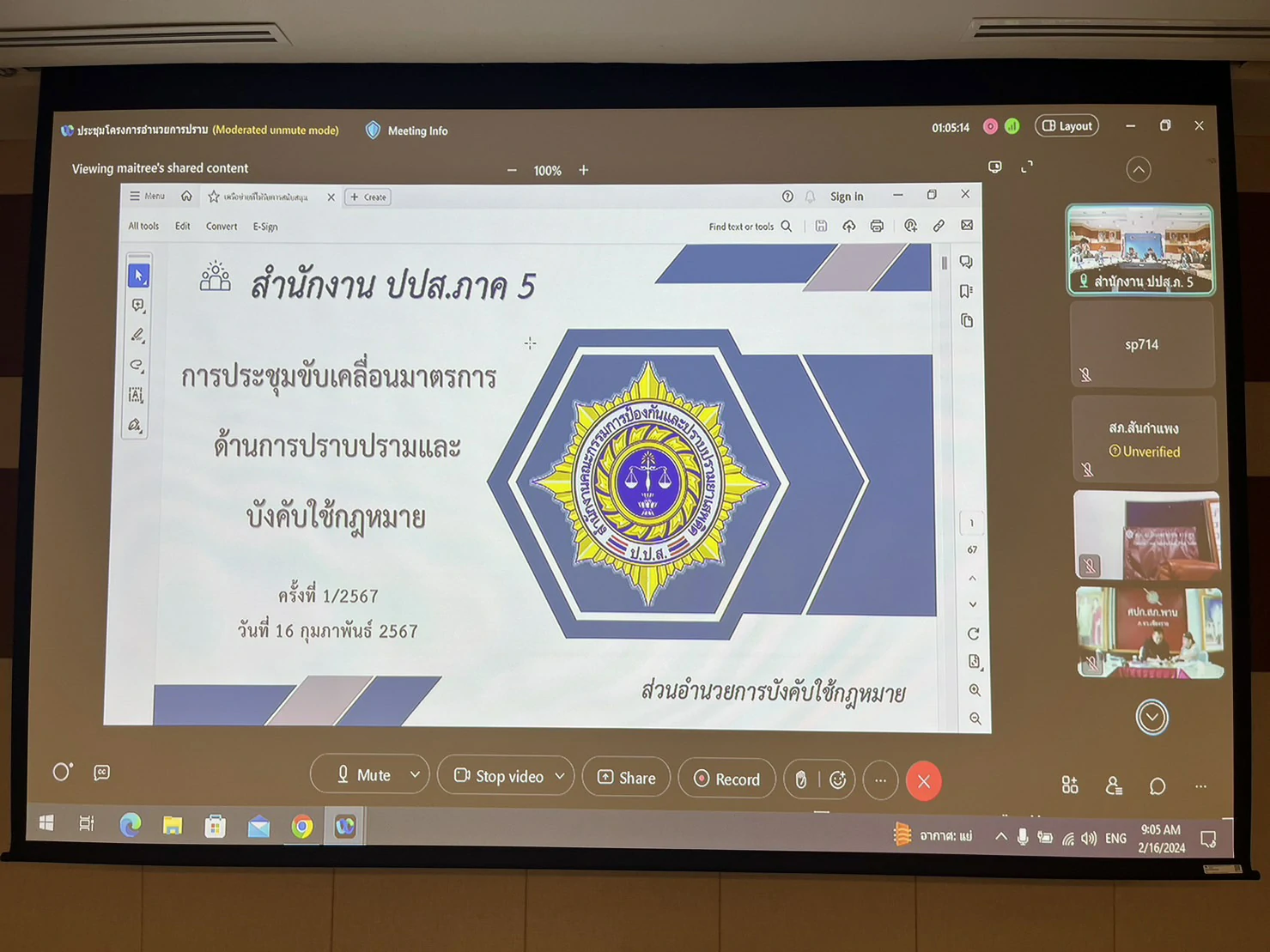 วันนี้(16/2/67)เวลา 09.00 น. พ.ต.อ.สิริมล วิสุทธิกุล รอง ผบก.ภ.จว.แพร่ ได้รับมอบหมายจาก พล.ต.ต.พิชญา บุญขจร ผบก.ภ.จว.แพร่ พร้อม ชปส.ภ.จว.แพร่ ,ศอ.ปส.ฯ ร่วมประชุมขับเคลื่อนมาตรการป้องกัน ปราบปรามยาเสพติด ณ ห้องประชุมกาแล 1 สำนักงาน ปปส.ภาค 5 และทุก สภ.ในสังกัด เฝ้าฟังการประชุมผ่านระบบประชุมทางไกลผ่านจอภาพ ณ ที่ตั้งหน่วย โดยมี พล.ต.ต.ธนะรัชต์ ชุ่มสวัสดิ์ รอง ผบช.ประจำ ตร. ช่วยราชการ ภ.5 เป็นประธานฯ