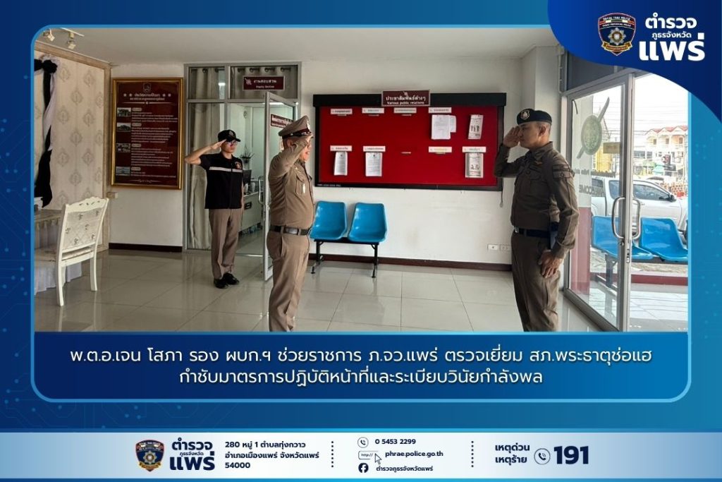 พ.ต.อ.เจน โสภา รอง ผบก.ฯ ช่วยราชการ ภ.จว.แพร่ ตรวจเยี่ยม สภ.พระธาตุช่อแฮ กำชับมาตรการปฏิบัติหน้าที่และระเบียบวินัยกำลังพล