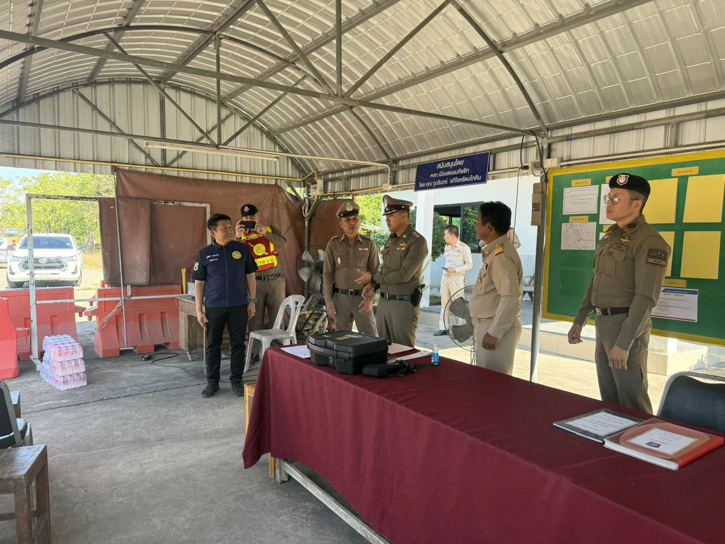 พร้อมด้วยเจ้าหน้าที่ตำรวจ เจ้าหน้าที่ฝ่ายปกครอง เจ้าหน้าที่สาธารณสุข และอาสาสมัคร ร่วมกันปฏิบัติหน้าที่ โดยรายงานเหตุการณ์ทั่วไปเป็นไปด้วยความเรียบร้อย