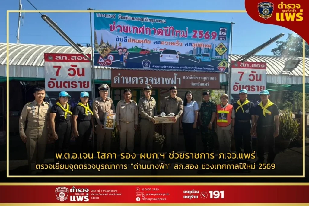 พ.ต.อ.เจน โสภา รอง ผบก.ฯ ช่วยราชการ ภ.จว.แพร่ ตรวจเยี่ยมจุดตรวจบูรณาการ “ด่านนางฟ้า” สภ.สอง ช่วงเทศกาลปีใหม่ 2569