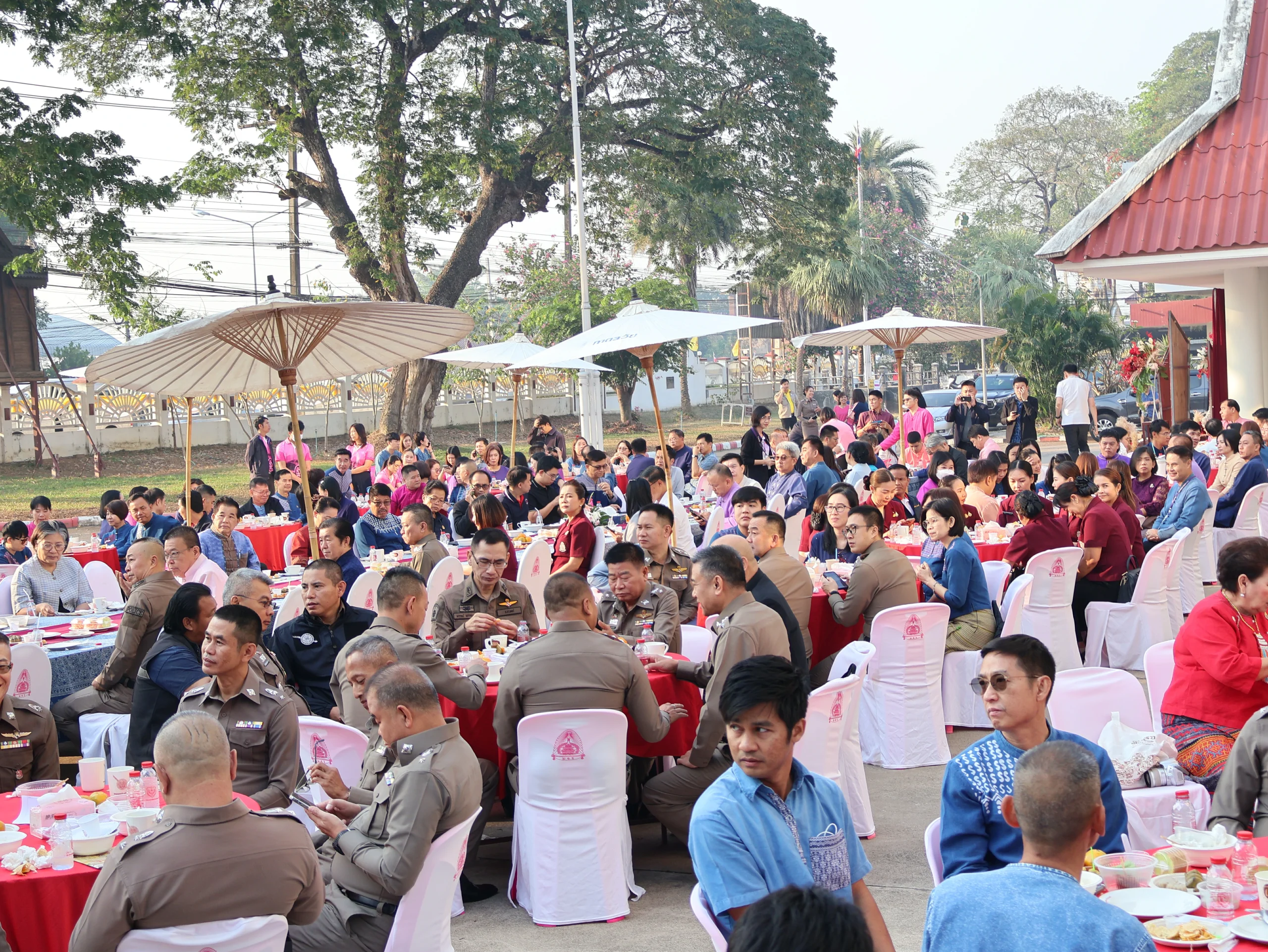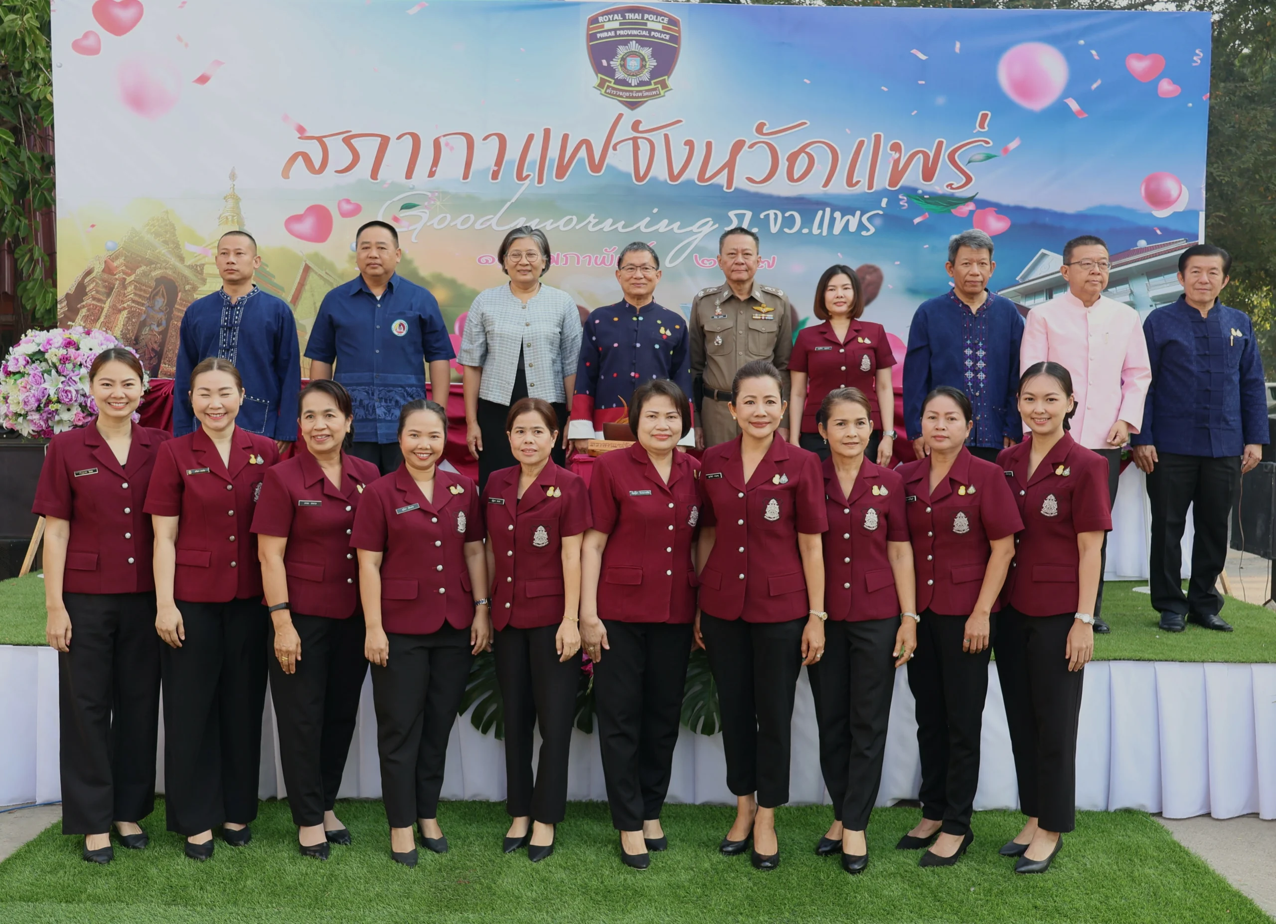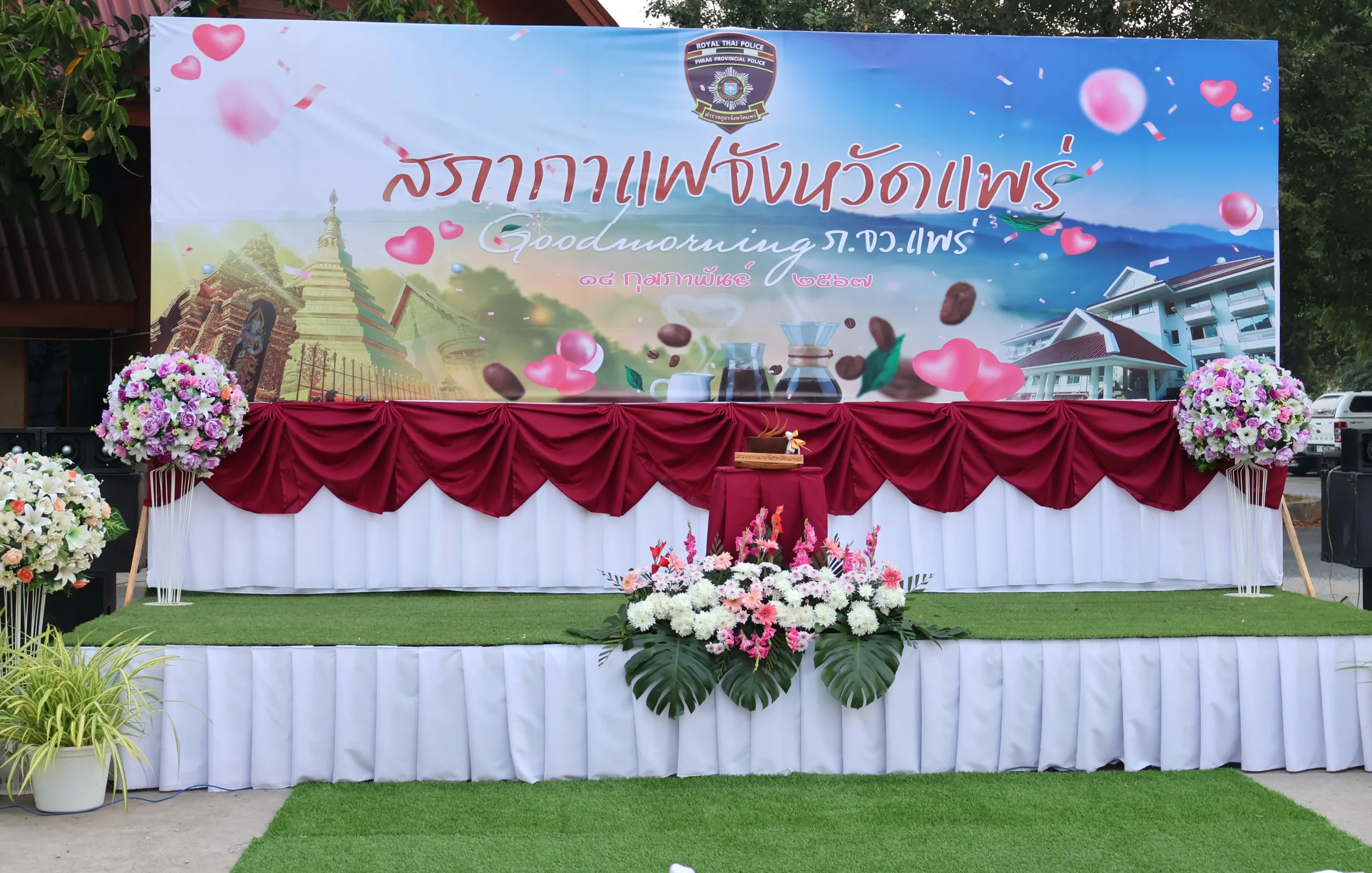 วันนี้ 14 ก.พ.67 เวลา 07.00 น. พล.ต.ต.พิชญา บุญขจร ผบก.ภ.จว.แพร่ พร้อมด้วยคุณบุญสิตา บุญขจร ประธานแม่บ้านตำรวจภูธรจังหวัดแพร่, คณะรอง ผบก.ภ.จว.แพร่,ผกก.ฝอ.ฯ,ผกก.สอบสวนฯ,ผกก.สส.ภ.จว.แพร่,หน.สภ.ฯ พร้อมข้าราชการตำรวจ ฝอ.ภ.จว.แพร่ ให้การต้อนรับ นายชุติเดช มีจันทร์ ผู้ว่าราชการจังหวัดแพร่ พร้อมหัวหน้าส่วนราชการและหน่วยต่างๆ ร่วมงานสภากาแฟ ซึ่ง ภ.จว.แพร่ ได้รับมอบหมายให้เป็นเจ้าภาพ จัดกิจกรรมสภากาแฟ โดยมีวัตุประสงค์เพื่อสร้างการมีส่วนร่วมระหว่างส่วนราชการได้พบปะพูดคุย และประชาสัมพันธ์ข่าวสารในเรื่องต่างๆ ของแต่ละหน่วยงานในจังหวัดแพร่ ในการนี้ ได้มอบถ้วยกาแฟให้กับหน่วยงานในสังกัดกระทรวงศึกษาธิการ เพื่อเป็นเจ้าภาพครั้งต่อไป ณ ลานด้านหน้าอาคารที่ทำการ ภ.จว.แพร่