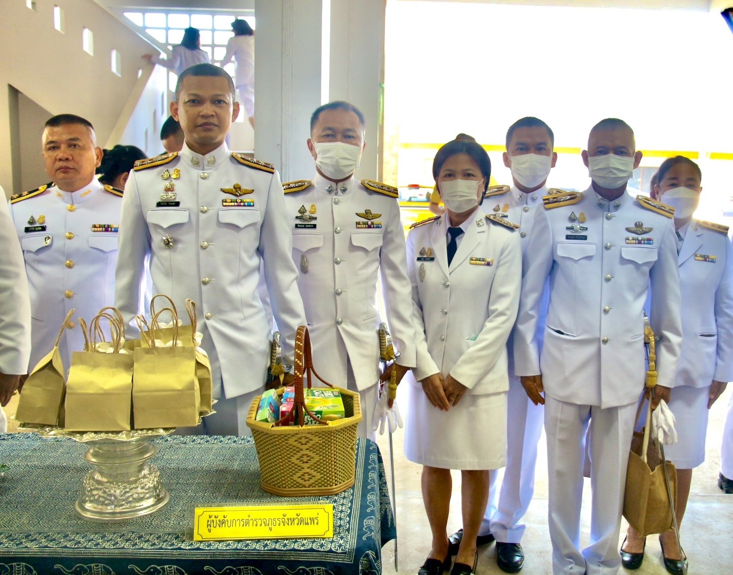 วันนี้ 5 ธ.ค.66 เวลา 07.00น. พล.ต.ต.พิชญา บุญขจร ผบก.ภ.จว.แพร่ มอบหมายให้ พ.ต.อ.สิทธิชัย ไกรแสง รอง ผบก.ภ.จว.แพร่ พร้อมด้วย พ.ต.อ.จิตรภณ สมหมาย ผกก.ฝอ.ภ.จว.แพร่ และข้าราชการตำรวจสัญญาบัตร ฝอ.ภ.จว.แพร่ ชุดที่ 5 และข้าราชการตำรวจ สภ.เมืองแพร่ ร่วมกิจกรรม เนื่องในวันคล้ายวันพระบรมราชสมภพพระบาทสมเด็จพระบรมชนกาธิเบศร มหาภูมิพลอดุลยเดชมหาราช บรมนาถบพิตร วันชาติ และวันพ่อแห่งชาติ 5 ธันวาคม 2566 ณ ศูนย์ประชุมและแสดงศิลปวัฒนธรรมล้านนาตะวันออกและกลุ่มประเทศ GMS ต.ทุ่งโฮ้ง อ.เมือง จว.แพร่ โดยมี นายชุติเดช มีจันทร์ ผวจ.แพร่ เป็นประธานในพิธี