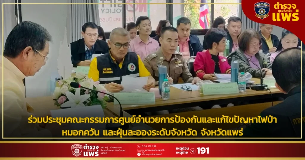 ข่าวประชาสัมพันธ์ 21 มกราคม 2568 ตำรวจภูธรจังหวัดแพร่ 126 วันนี้ 21 ม.ค.68 เวลา 10.00 น. พ.ต.อ.จารุกฤดิ ใหม่ไชย ผกก.(สอบสวน) กลุ่มงานสอบสวนภ.จว.แพร่ ได้รับมอบหมายให้เป็นผู้แทน ผบก.ภ.จว.แพร่ เข้าร่วมประชุมคณะกรรมการศูนย์อำนวยการป้องกันและแก้ไขปัญหาไฟป่า หมอกควัน และฝุ่นละอองระดับจังหวัด จังหวัดแพร่ ณ ห้องประชุมสำนักงานทรัพยากรและสิ่งแวดล้อมจังหวัดแพร่ โดยมีนายสมชัย เลิศประสิทธิพันธ์ ผู้ว่าราชการจังหวัดแพร่ เป็นประธานการประชุม