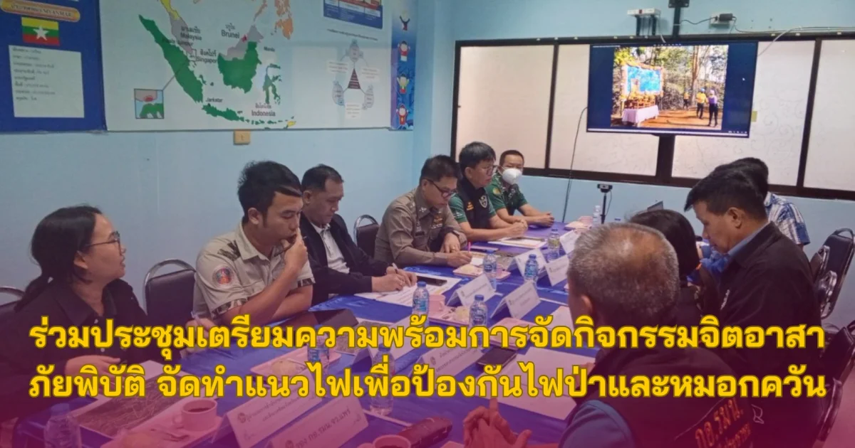 ร่วมประชุมเตรียมความพร้อมการจัดกิจกรรมจิตอาสาภัยพิบัติ จัดทำแนวไฟเพื่อป้องกันไฟป่าและหมอกควัน