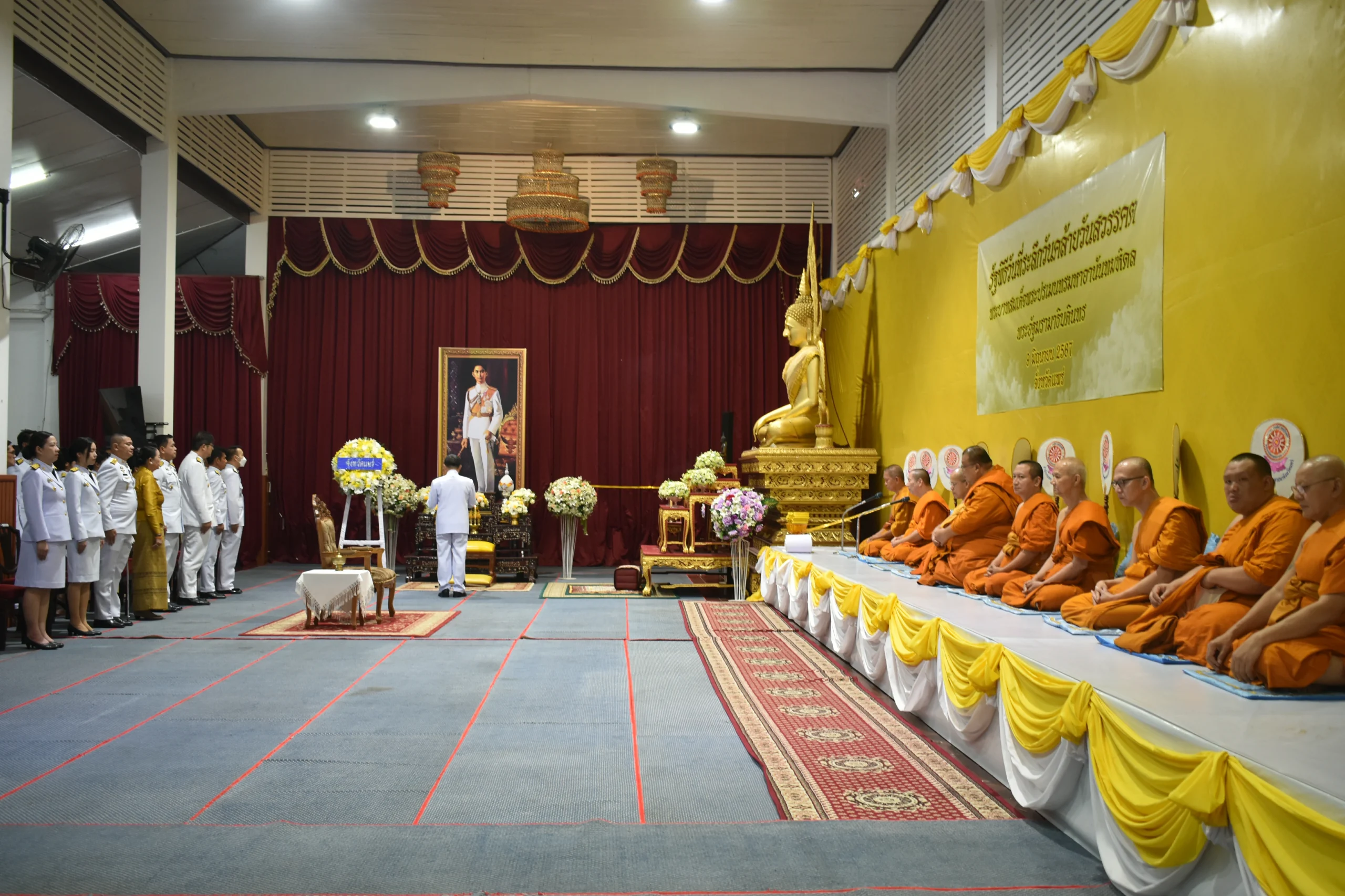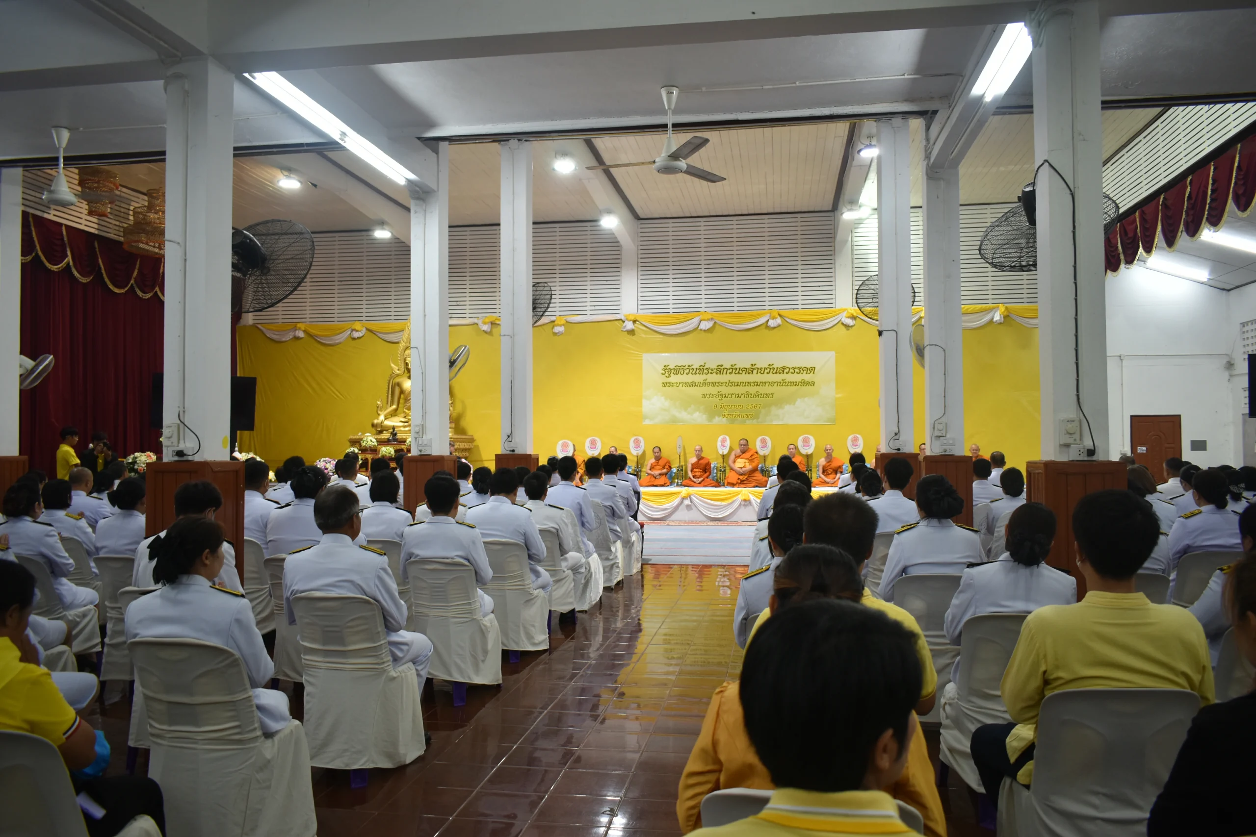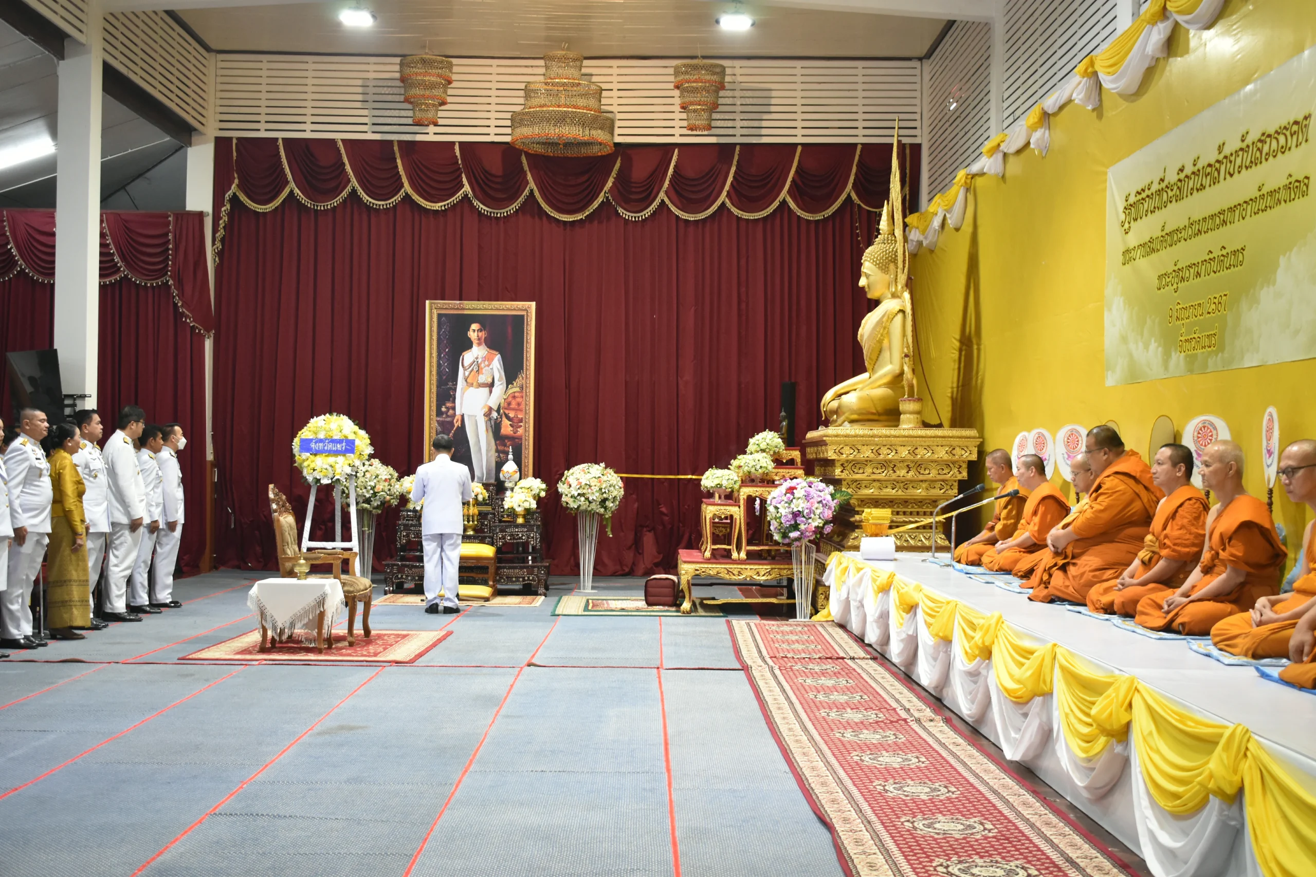 วันนี้ 9 มิ.ย.67 เวลา07.30 น. พล.ต.ต.พิชญา บุญขจร ผบก.ภ.จว.แพร่ มอบหมายให้ พ.ต.อ.จารุกฤดิ ใหม่ไชย ผกก.สอบสวน(กลุ่มงานสอบสวน) ภ.จว.แพร่ พร้อมข้าราชการตำรวจชั้นสัญญาบัตร ฝอ.ภ.จว.แพร่ ชุดที่ 5 ร่วมรัฐพิธีวันที่ระลึกวันคล้ายวันสวรรคตสพระบาทสมเด็จพระปรเมนทรมหาอานันทมหิดล พระอัฐมรามาธิบดินทร ณ ศาลาพุทธสถาน วัดพระบาทมิ่งเมืองวรวิหาร อ.เมือง จ.แพร่ โดยมี นายชุติเดช มีจันทร์ ผวจ.แพร่ เป็นประธานในพิธี