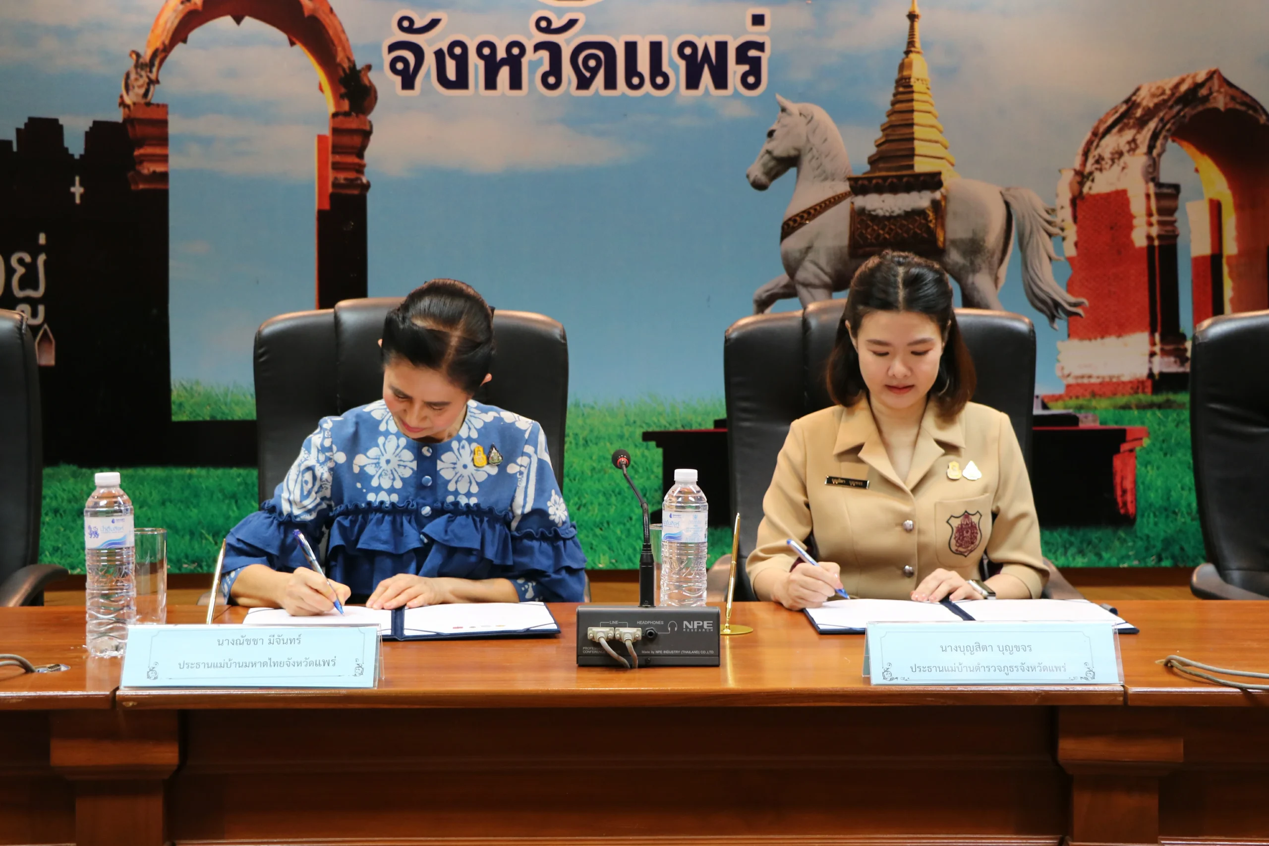 ร่วมลงนามบันทึกข้อตกลงระหว่าง สมาคมแม่บ้านมหาดไทยจังหวัดแพร่ กับ สมาคมแม่บ้านตำรวจภูธรจังหวัดแพร่