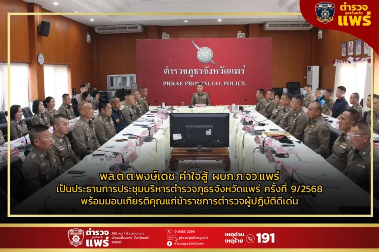 ข่าวประชาสัมพันธ์ 18 กันยายน 2568 124 👮♂️ พล.ต.ต.พงษ์เดช คำใจสู้ ผบก.ภ.จว.แพร่ เป็นประธานการประชุมบริหารตำรวจภูธรจังหวัดแพร่ ครั้งที่ 9/2568 พร้อมมอบเกียรติคุณแก่ข้าราชการตำรวจผู้ปฏิบัติดีเด่น 📅 วันนี้ (18 กั...